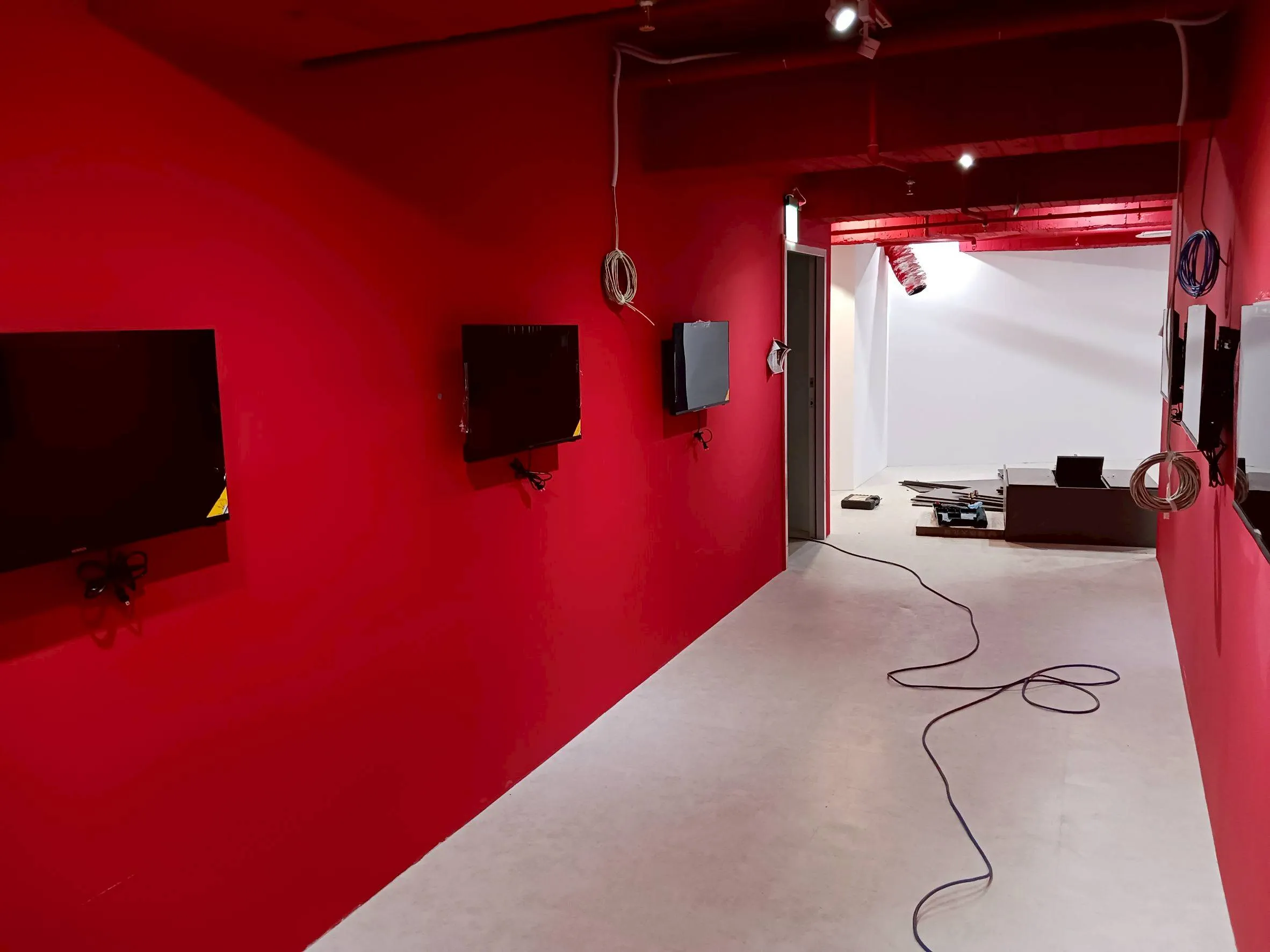 台中市 運動俱樂部電視壁掛設計安裝。(天吊式。直立式壁掛)